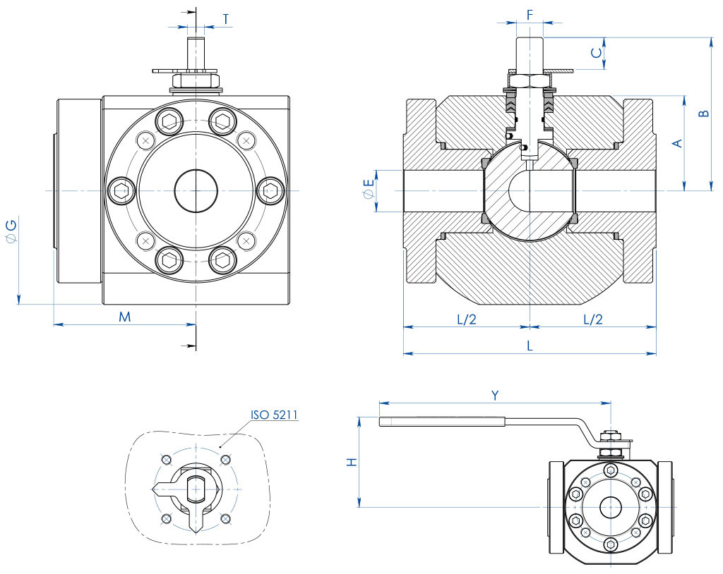 H2 INVICTUS MAGNUM MAGNUM Wafer MAGNUM Split Wafer MAGNUM Split Wafer 3方式4密封 THOR PROCHEMIE 60 HERCULES KRATOS SUPREME TRUNNION 其他黄铜球阀 其他铸铁球阀 其他不锈钢球阀 其他碳素钢球阀 其他PVC材质球阀 下载 总目录 下载 执行器附件目录 解码MAGNUM & THOR 配置您的产品 下载不同格式的2D和3D文件 下载 下载销售条款 宏 球阀 小类 MAGNUM 子类 MAGNUM Split Wafer 3方式4密封 家族 MAGNUM Split Wafer 3 方式4密封 PN 16-40 ANSI 150 配置 动力 申请详细信息 打印页面 下载目录 MAGNUM SPLIT WAFER 3方式4密封 产品代码解码 优点 特性 尺寸 物料 图表和起动扭矩 规格 附件 文档 1.防静电装置(球体、阀杆和阀体间存在常电)此装置可以避免在易燃和/或易爆环境中静电荷的聚集阀门在整个寿命周期中的接触安全均具有保障2.双抗磨环借助更低的扭矩即可操纵阀门;相较于单环装置,双环的磨损在运行中更低3.3组密封件组成的V形密封套件和+O形圈在定量的循环过后,该装置仍可确保完美的密封性4.阀杆密封件上的碟型弹簧封堵因轴的半周旋转磨损而形成的间隙,避免内容物外泄;确保雪佛龙密封套件(V形)保持紧致,避免在温差显著的环境中出现内容物外泄。5.石墨弹性密封件确保外端密封性不受阀门所在环境的温差影响得益于粗加工至细加工的单一定位,实现更高的轴向对齐精度更佳的阀门寿命更小的操纵扭矩依照执行标准,采用NACE规范认证材料打造的碳钢阀体更佳的耐腐蚀性保障更强的材料韧性在OMAL自有设施内完成全部生产流程对加工各个阶段的最佳管控按照客户的需求可快速供货ATEX认证可安装于潜在易爆的环境内“TA LUFT排放泄漏”认证更高的阀杆外端密封性保障PED认证完全符合欧盟有关加压装置的安全条例 标准配置• 浮动球体,全通径• Modified PTFE密封软座• 法兰接口标准:EN1092-1, ASME B16.5• 压力等级:ANSI 150; PN16-40• 密封等级:EN12266-1 A级• 使用温度:-40℃~+150℃• 截止流体:空气、水、天然气、石油和石化产品。• 截止流体:空气、水、天然气、石油和石化产品。• EN12266-2 防静电装置• 阀杆密封:Modified PTFE材质多层V形密封套件• 阀杆额外密封件为FKM材质的O形圈• 防喷溅阀杆• 适用于ISO5211执行器的孔位设计选装配置• 有关其他法兰接口类型的详情,请联络我司的销售部门。• 密封件材质:玻璃填料PTFE(PTFE-GF),碳石墨填料PTFE(PTFE-CF)。有关其他类型的材质,请联络我司的销售部门。• 不锈钢手柄• 不锈钢螺母和阀杆弹簧• 有关标准之外的材质(阀体/球体/阀杆),请联络我司的销售部门• 可选装ATEX标识和认证认证• 符合欧盟《2014/68/UE》加压装置条例;挥发性排放标准ISO 15848 (ISO FE BH-C03-SSA 0);TA-LUFT VDI: 2440• 安全等级最高可达SIL 3,符合IEC 61508的规定• 符合欧盟《2014/34/UE》ATEX防爆条例,可选装ATEX认证型号设计准则• 阀体厚度满足:ASME B16.34,ASME VIII div.1,EN12516• 材质和评级满足ANSI标准阀门的ASME B16.34规范,PN标准阀门满足EN 12516规范 -PN- 尺寸规格尺寸PN∅ELMABCATT. ISOF/TØG∅JØRSPØK孔数ØIHYKg.手柄套件密封套件DN [mm][inch]151/2"16-40131246240559,2F0310/61129045215654M12731406,8KLV58004KGBV557040203/4"16-401913679487113F0412/813010058214754M1290,415010,5KLV58006KGBV557050251"16-402515185579219,1F0516/1014911068216854M12108,427515,2KLV58008KGBV557060321" 1/416-403216796609519,1F0516/10164130782201004M16111,427520,8KLV58008KGBV557070401" 1/216-403818510072119,526,4F0722/14185140883201104M16132,535026,1KLV58010KGBV557080502"16-405120011081128,526,7F0722/141951501023201254M16141,535032,4KLV58010KGBV557090652" 1/216642181219315433,2F1030/182201781223201454M16180,345047,6KLV58012KGBV557100803"167624412610116233,2F1030/182391901353201608M16188,345057,9KLV58012KGBV5571101004"1610232515012418233,2F1030/182962351583201808M16208,3450109KLV58012KGBV557120-ANSI-尺寸规格尺寸ANSIØELMABCATT. ISOF/TØGØJØRSPØK孔数ØIHYKg.手柄套件密封套件DN [mm][inch]151/2"150131246240559,2F0310/61129035,11,61660,541/2"UNC731406,8KLV58004KGBV557040203/4"1501913679487113F0412/813010042,91,61669,841/2"UNC90,415010,4KLV58006KGBV557050251"1502515185579219,1F0516/1014911050,81,61679,241/2"UNC108,427515,2KLV58008KGBV557060321" 1/41503216796609519,1F0516/1016413063,51,61688,941/2"UNC111,427521,3KLV58008KGBV557070401" 1/21503818510072119,526,4F0722/14185140731,61698,641/2"UNC132,535026,4KLV58010KGBV557080502"1505120011081128,526,7F0722/1419515091,91,620120,645/8"UNC141,535032,6KLV58010KGBV557090652" 1/2150642181219315433,2F1030/18220178104,61,620139,745/8"UNC180,345046,6KLV58012KGBV557100803"1507624412610116233,2F1030/182391901271,620152,445/8"UNC188,345058,5KLV58012KGBV5571101004"15010232515012418233,2F1030/18296235157,21,620190,585/8"UNC208,3450109KLV58012KGBV557120 材质 - SPLIT WAFER PN16-40 ANSI 150编号。介绍316 不锈钢1阀体ASTM A182 F316 / A479TP.3162环型螺母3侧接口环型螺母4球体ASTM A351 CF8M5阀杆A564 TP.630 (17-4PH)6*阀座Modified PTFE7*阀杆下密封件Modified PTFE8*V形密封套件Modified PTFE9*内杆O形圈FKM10密封顶环304 不锈钢11阀杆弹簧镀锌碳钢 (xx)12螺母锁片镀锌碳钢 (x)13螺母锁片304 不锈钢14定标圈304 不锈钢15*阀体环型螺母密封垫石墨填料16*阀体侧接口环型螺母密封垫石墨填料17阀体-环型螺母螺栓A2-70 (304 不锈钢)18阀体侧接口环型螺母的螺栓19防静电装置316 不锈钢20锁止螺母镀锌碳钢 (x)21止动螺栓A2-70 (304 )22限位杆镀锌碳钢 (x)23杠杆Fe37 镀锌 (x)* 密封套件的组件选装配置:(x) : 304不锈钢(xx) : 301不锈钢 流量/压力损失图表和公称系数Kv 流量系数Kv的数值等于压降为1 bar时的流量值(单位为m3/h,水温为15