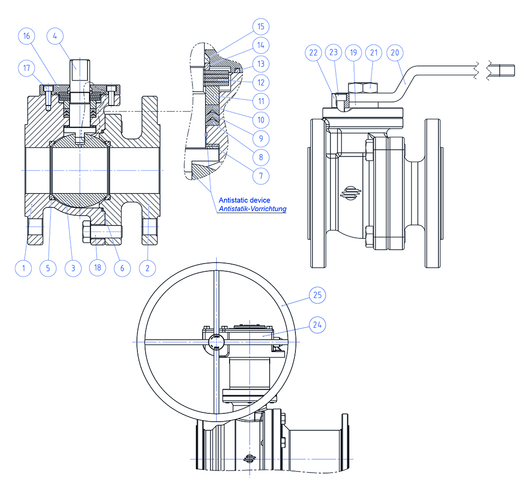 H2 INVICTUS MAGNUM THOR PROCHEMIE 60 HERCULES KRATOS SUPREME TRUNNION 其他黄铜球阀 其他铸铁球阀 其他不锈钢球阀 其他碳素钢球阀 其他PVC材质球阀 下载 总目录 下载 执行器附件目录 解码MAGNUM & THOR 配置您的产品 下载不同格式的2D和3D文件 下载 下载销售条款 宏 球阀 小类 PROCHEMIE 60 配置 动力 申请详细信息 打印页面 下载目录 PROCHEMIE 60 优点 特性 特性 物料 附件 驾驶信息 特殊版本 文档 1 石墨弹性密封件确保密封性不受阀门所在环境的温差影响2 双抗磨环借助更低的扭矩即可操纵阀门;相较于单环装置,双环的磨损在运行中更低3 防静电装置(球体、阀杆和阀体间存在常电)此装置可以避免在易燃或易爆环境中静电荷的聚集。阀门在整个寿命周期中的接触安全均具有保障4 阀杆密封件上的预张力碟型弹簧 碟型弹簧的预张力与阀轴的旋转不相关,可以显著降低“V”形密封套件的磨损,赋予阀门更长的运行寿命。确保雪佛龙密封套件(V形)保持紧致,避免在温差显著的环境中出现内容物外泄。5 三组密封件组成的“V”形密封套件和+O形圈 达到较高的循环次数后,仍能保持完美的密闭性6 阀杆套阀杆的附加引导件6~7个顶盖密封件+阀杆套构成独立于雪佛龙“V”形密封套件的二级密封室得益于粗加工至细加工的单一定位,实现更高的轴向对齐精度。更佳的阀门寿命。更小的操纵扭矩更便捷的设备直接维护性 降低维护期间产生的成本“Fire Safe”认证阀门在火灾环境下的密封性保障ATEX认证可安装于潜在易爆的环境内“TA LUFT排放泄漏”认证更高的阀杆外端密封性保障 PED认证完全符合欧盟有关加压装置的安全条例AD2000认证符合德国标准最高达SIL3等级的认证更高的运行安全等级 常规参数• 专门为化学工业设计的阀门• 浮动球体,全通径。• RPTFE材质密封软座• 法兰接口标准:EN 1092-1• 压力等级:PN16-40• 阀轴:长模式和短模式• EN12662-2 防静电装置• 阀杆密封件:V形密封套件• 防喷溅阀杆• 适用于ISO5211执行器的孔位设计• 封闭角度>7°• Operating temperature:-40℃~+150℃选装配置• PTFE+25%玻璃填料材质阀座的PROCHEMIE(Operating temperature:-40℃~+200℃)• Modified PTFE材质阀座的PROCHEMIE(Operating temperature:-40℃~+150℃)• 手柄配备挂锁,阀杆延长套• 有关其他应用领域,请联络我司的销售部门认证• 符合欧盟《2014/68/UE》加压装置条例;符合AD2000 HP0/A4条例;• 挥发性排放标准 UNI EN ISO 15848,(ISO-FE-AH-C03-SSA);TA-LUFT (60000次循环) VDI 2440;• 防火安全:ISO 10497 Third ed. 2010 / API 607 Sixth ed. 2010 (DN150 ONLY FIRE SAFE DESIGN)• 安全等级最高可达SIL 3,符合IEC 61508的规定。•符合欧盟《2014/34/UE》ATEX防爆条例,可选装ATEX认证型号• EAC设计准则 • 阀体厚度满足:ASME B16.34, ASME VIII div.1, EN 12516; PAS 1085 尺寸规格尺寸PNØEABCØGØRSPØHFORIØI孔 5211ØMØNØF/TKL (F1)L (F4)重量 Kg (F1)重量 Kg (F4)DN [mm][inch]DN 151/2"16-4013476112954521665414F0442M512/8481301152,932,86DN 203/4"16-40195064121055821875414F0442M512/8511501203,623,56DN 251"16-40256279151156821885414F0550M616/10491601254,734,63DN 321" 1/416-403267841514078218100418F0550M616/10521801307,136,55DN 401" 1/216-403885,5113,52315088318110418F0770M822/145520014011,510,9DN 502"16-40519512323165102320125418F0770M822/146123015013,612,6DN 652" 1/2166413116430185122318145418F10102M1030/187129017022,218,725-402281824,320,5DN 803"16-407613817130200138324160818F10102M1030/18783101802926DN 1004"1610216820130220158320180818F10102M1030/189635019038,132,625-40235162241908229443,837,8DN 1506"16152220262,535285212322240822F14140M1645/30168480350 (F5)98,591 (F5) 尺寸规格尺寸PN阀轴产品代码HYØV手柄套件DN [mm][inch]DN 151/2"16/40F4LP004F000A0000N00082152---KLVVP004F1LP004F100A0000N000DN 203/4"16/40F4LP005F000A0000N00085152---KLVVP004F1LP005F100A0000N000DN 251"16/40F4LP006F000A0000N000102277---KLVVP006F1LP006F100A0000N000DN 321" 1/416/40F4LP007F000A0000N000107277---KLVVP006F1LP007F100A0000N000DN 401" 1/216/40F4LP008F000A0000N000132352---KLVVP008F1LP008F100A0000N000DN 502"16/40F4LP009F000A0000N000142352---KLVVP008F1LP009F100A0000N000DN 652" 1/216F4LP010E000A0000N000195452---KLVVP010F1LP010E100A0000N00025/40F4LP010I000A0000N000195452---KLVVP010F1LP010I100A0000N000DN 803"16/40F4LP011F000A0000N000203452---KLVVP010F1LP011F100A0000N000DN 1004"16F4LP012E000A0000N000233452---KLVVP010F1LP012E100A0000N00025/40F4LP012I000A0000N000233452---KLVVP010F1LP012I100A0000N000DN 1506"16F5RP014E000A0000N000618346500*RRM011G00Q36001004 + SG500 Kit: KCF145596F1RP014E100A0000N000* 变速器 材质编号介绍材质1阀体1.44082法兰接口1.44083球体1.4408/CF8M4阀杆1.4404/316 不锈钢5阀座PTFE+15% 玻璃填料6阀体-法兰接口密封垫石墨7抗磨环Modified PTFE8V形密封套件Modified PTFE9V形密封套件Modified PTFE10V形密封套件Modified PTFE11密封顶环1.4404/316 12碟型弹簧1.4310/301 不锈钢13阀体-上封盖密封垫石墨14碟型弹簧顶环1.4404/316 不锈钢15阀杆衬套戴维龙16上封盖1.4404/316 不锈钢17上封盖螺栓A4-7018阀体-法兰接口螺栓A4-7019定距环PTFE+25% 碳石墨填料20手柄1.4301/304 不锈钢21内杆螺母A4-7022手柄止动杆1.4404/316 不锈钢23止动杆螺栓A4-7024变速器铸铁(涂漆)25手轮碳钢(涂漆) 手柄专用外杆延长套 材质 组件编号.介绍材质1延长套AISI304不锈钢2传动轴AISI 430 F3衬套DELRIN4O形圈NBR5手柄Fe37 镀锌(*)6螺母镀锌碳钢(*)7手柄止动杆镀锌碳钢(*)8止动杆螺栓A2-709定距片PTFE 碳填充(*): 可选配304不锈钢 尺寸规格ISO标准阀门ØAØBØMØNF/TXYF03365,5365,510/638,5141,5F04425,542M512/845,5151,5F05506,5506,516/1048,5276,5F07708,5708,522/1457,5351,5F10102111021130/1879,5451,5注