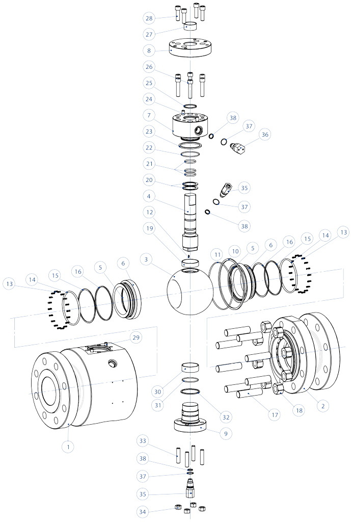 H2 INVICTUS MAGNUM THOR PROCHEMIE 60 HERCULES KRATOS SUPREME TRUNNION 其他黄铜球阀 其他铸铁球阀 其他不锈钢球阀 其他碳素钢球阀 其他PVC材质球阀 下载 总目录 下载 执行器附件目录 解码MAGNUM & THOR 配置您的产品 下载不同格式的2D和3D文件 下载 下载销售条款 宏 球阀 小类 SUPREME Trunnion 申请详细信息 打印页面 下载目录 SUPREME TRUNNION 优点 特性 特性 组件 尺寸和配件 驾驶信息 文档 DN ≤ 100 SIZE ≤ 4” – ANSI 150-300 1.抗静电装置(球体,茎部与身体之间的电气连续性)避免在易燃和/或爆炸性环境中可能引起着火的静电电荷在阀门的整个使用寿命中保证接触安全2.双减摩环确保较低的阀门致动扭矩比单环版本磨损少4.阀杆密封件上的贝氏垫圈它们可确保由于轴的半旋转运动引起的磨损而恢复间隙,避免了外部损失它们使您可以在“雪佛龙”(V形)密封件保持通电状态,避免在温度变化较大时泄漏到外部5.弹性石墨密封无论阀门承受何种温度变化,它都能保证向外密封一次定位即可完成从生到成品的加工,从而提高了轴的对准精度阀门本身寿命更长驱动力矩小碳钢阀体采用标准的NACE认证材料制成,可按标准执行确保更大的耐腐蚀性材料的延展性更高生产过程完全在OMAL中进行在加工的所有阶段进行最大程度的控制能够快速提供客户要求的特殊执行“防火”证书即使在着火的情况下也能保证阀门的密封性通过ATEX认证允许安装在潜在爆炸性环境中“TA LUFT逃逸排放”认证它确保了杆密封件向外的高度安全性通过PED认证完全符合压力设备的欧洲安全标准通过SIL 3认证高功能安全性 DN ≤ 100 SIZE ≤ 4” – ANSI ≥ 600 1.双减摩环确保较低的阀门致动扭矩比单环版本磨损少2.双滚珠导套它们降低了阀门的扭矩抗静电装置(球体,茎部与身体之间的电气连续性)避免在易燃和/或爆炸性环境中可能引起着火的静电电荷在阀门的整个使用寿命中保证接触安全弹性石墨密封无论阀门承受何种温度变化,它都能保证向外密封碳钢阀体采用标准的NACE认证材料制成,可按标准执行确保更大的耐腐蚀性材料的延展性更高“防火”证书即使在着火的情况下也能保证阀门的密封性通过ATEX认证允许安装在潜在爆炸性环境中通过PED认证完全符合压力设备的欧洲安全标准通过SIL 3认证高功能安全性 DN ≥ 150 SIZE ≥ 6” 1.双减摩环确保较低的阀门致动扭矩比单环版本磨损少2.双滚珠导套它们降低了阀门的扭矩抗静电装置(球体,茎部与身体之间的电气连续性)避免在易燃和/或爆炸性环境中可能引起着火的静电电荷无论阀门承受何种温度变化,它都能保证向外密封弹性石墨密封无论阀门承受何种温度变化,它都能保证向外密封碳钢阀体采用标准的NACE认证材料制成,可按标准执行确保更大的耐腐蚀性材料的延展性更高“防火”证书即使在着火的情况下也能保证阀门的密封性通过ATEX认证允许安装在潜在爆炸性环境中通过PED认证完全符合压力设备的欧洲安全标准通过SIL 3认证高功能安全性逃逸排放认证它确保了杆密封件向外的高度安全性 常规配置• 两片或三片结构阀体• 弹力密封阀座• 阀体过压时自动泄压• 双关&双泄放阀• 压力等级:ANSI 150~ANSI 2500• 应用领域:化学和石化设施、电力中控装置及其他用于液体、气体、蒸汽和碳氢化合物处理工业领域• 防喷溅阀杆选装特殊配置• 双效活塞• 特殊配置的材质和工艺能够满足客户要求• 可选装ATEX标识和认证认证• 符合欧盟《2014/68/UE》加压装置条例。• 符合欧盟《2014/34/UE》ATEX防爆条例。(可选装ATEX认证型号)。• 安全等级最高可达SIL 3,符合IEC 61508的规定。• 防火安全 EN ISO 10497- API607• 挥发性排放标准 UNI EN ISO 15848设计标准• ASME B16.34• 接口:ASME B16.5 (RF-RTJ), ASME B16.25 (BW)• 阀轴:ASME B16.10• 动力装置法兰:ISO5211• Design API 6D on request. DN≤100 尺寸 ≤4” ANSI 150-300 DN≤100 尺寸 ≤4” ANSI ≥600 DN ≥150 尺寸 ≥6” ANSI 150DN尺寸LØEØGAØC502"1785115267*146*803"20376190901901004"2291022301112401506"3941522802323162008"45720334528640025010"53325440832447530012"610305484355*580*35014"686337536402*626*40016"762386397441*700*45018"864438636484*779*50020"914489*694560*900*60024"1067591*814620*1020* ANSI 300DN尺寸LØEØGAØC502"2165116567*156*803"28276210902001004"3051022551112401506"4031523202363242008"50220338228640825010"56825444632447530012"648305522355*580*35014"762337585402*626*40016"838386649504*770*45018"914438712484*779*50020"991489*776560*900*60024"1143591*915620*1020* ANSI 600DN尺寸LØEØGAØC502"29251165160*189*803"356762101912101004"4321022752182791506"5591523552633552008"66020342030443025010"78725451035252030012"838305561402*620*35014"889337604416*655*40016"991386687450*730*45018"1092438744515*810*50020"1194489*814588*955*60024"1397591*941645*1070* ANSI 900DN尺寸LØEØGAØC502"36851215120*189*803"381762422042401004"4571022932182791506"6101523822633552008"73720347130443025010"83825454735252030012"96530561245266035014"1029322640460*700*40016"1130373706485*760* ANSI 1500DN尺寸LØEØGAØC502"36851215140*189*803"470762682252701004"546102312240*300*1506"705146395285*390*2008"832192485340*460*25010"991239585390*555* ANSI 2500DN尺寸LØEØGAØC502"45142235160219803"508633052413181004"673873572533351506"914131485340500* 指示高度 DN≤100 尺寸 ≤4” – ANSI 150-300 DN≤100 尺寸 ≤4” – ANSI ≥600 DN ≥150 尺寸 ≥6” DN≤100 尺寸 ≤4” – ANSI 150-300 1.阀体2.法兰接口3.球体4.阀杆5.阀座6.阀座架7.下封盖8.阀体O形圈9.阀体密封垫10.阀座架O形圈11.支承环12.
