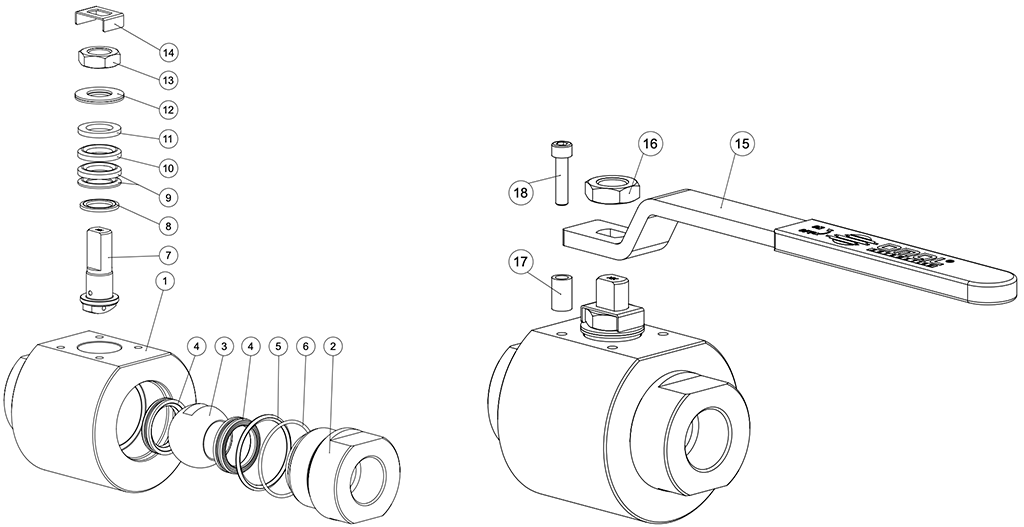 • Edelstahlhebel; Muttern und Spindelfedern aus Edelstahl. Für Sonderausführungen mit anderen Werkstoffen (Gehäuse/Kugel/Spindel) wenden Sie sich bitte an unsere Verkaufsabteilung.