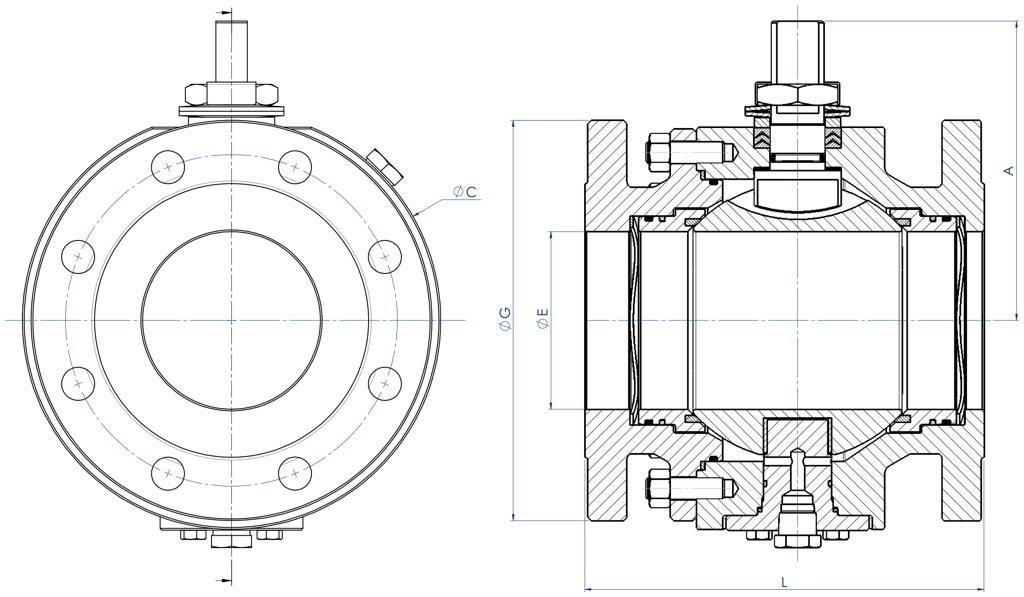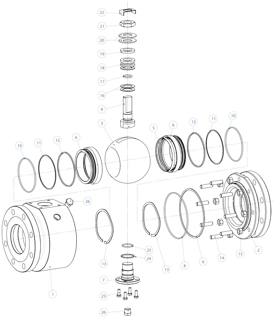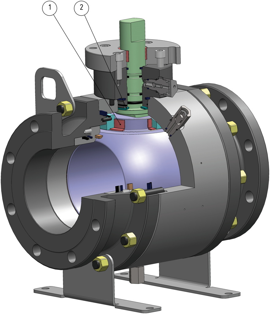 Gehäuse der Armatur bei der Standardausführung aus Carbonstahl, aus nach NACE-Zertifizierung genormten Werkstoffen gefertigt
