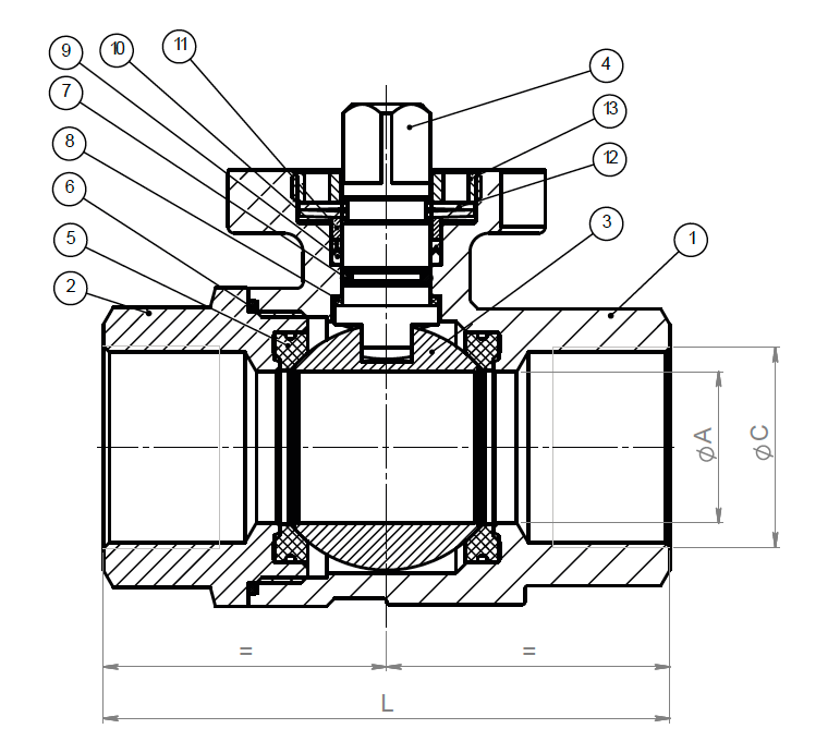 DN ≤ 25 A182 tp.316, DN ≥ 32 A351 CF8M / 1.4408