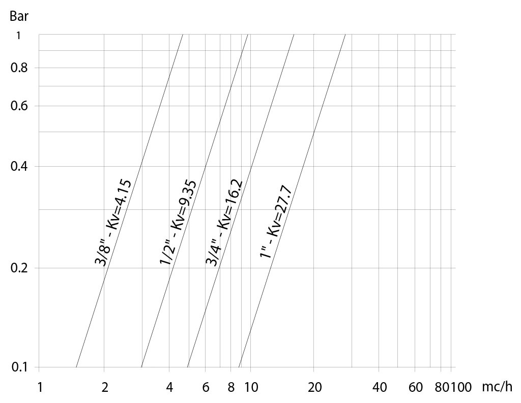 Der Kv-Wert ist der Durchflusswert in m3/h (bei einer Wassertemperatur von 15°C), der einen Druckabfall von 1 bar verursacht.