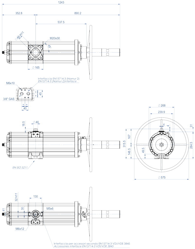 BESTANDTEILE DOPPELTWIRKENDER PNEUMATISCHER STELLANTRIEB MIT INTEGRIERTEM HANDRAD - BAUGRÖSSE: DANV3840