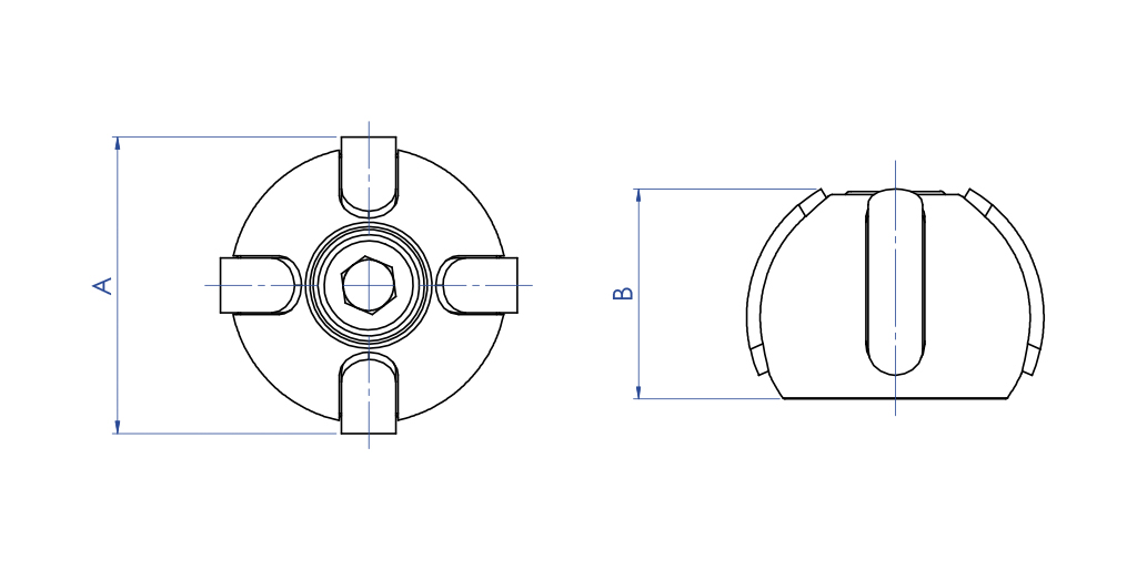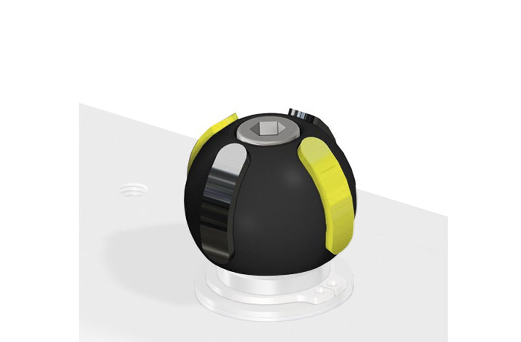 BESCHREIBUNG Kunststoffausführung Version Namur: Kugel aus schwarzem Kunststoff; Anzeigebänder aus gelbem Kunststoff. Hinweis: Die Bänder können kombiniert werden, um in Normalstellung geschlossene oder offene Ventile und Dreiwegeventile mit „L“- oder „T“-Kugel zu signalisieren.