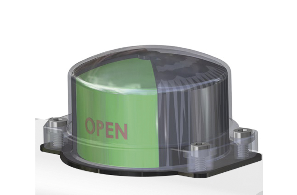 ESCHREIBUNG Ampelausführung mit grünen und roten Sektoren aus Polycarbonat. Direktanbau für Stellantriebe nach VDI / VDE 3845.
