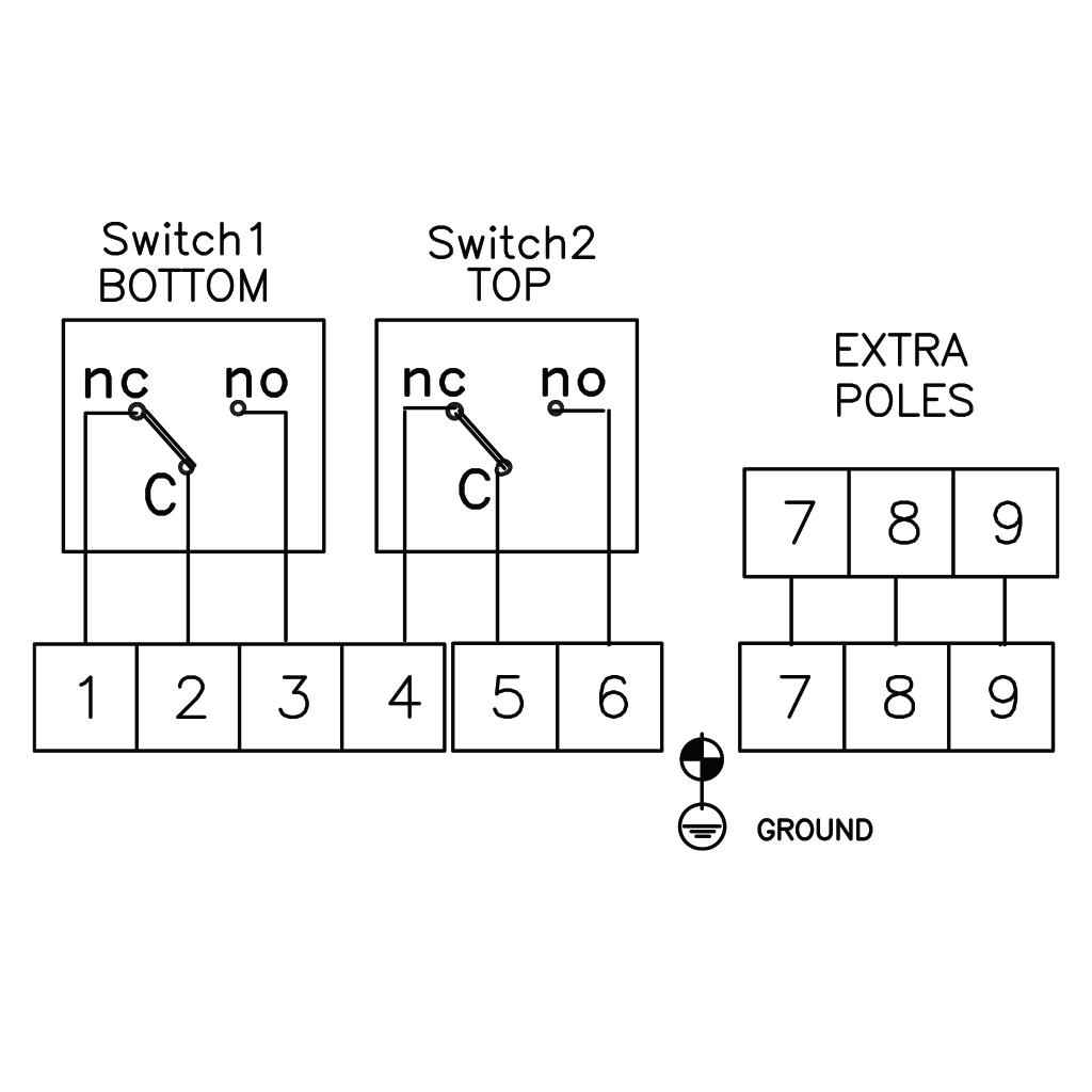 TECHNICAL FEATURES - Made to easily verify the visual and electrical position of each valve even from long distances. - Built according to VDI / VDE 3845 standards. (EN15714-3). - It can contain two limit switches either mechanical "SPDT" or proximity. - The cam of limit switch cannot slide since their regulation or other tools. - The pre-wiring is realized means of numbered terminals: n° 6 for the two microswitches, and extra poles for eventual solenoid wiring (see wiring diagrams). - N. 2 threaded electrical connections for cable gland. - Operating temperature: from -40°C to + 80°C. - Protection rate: IP65