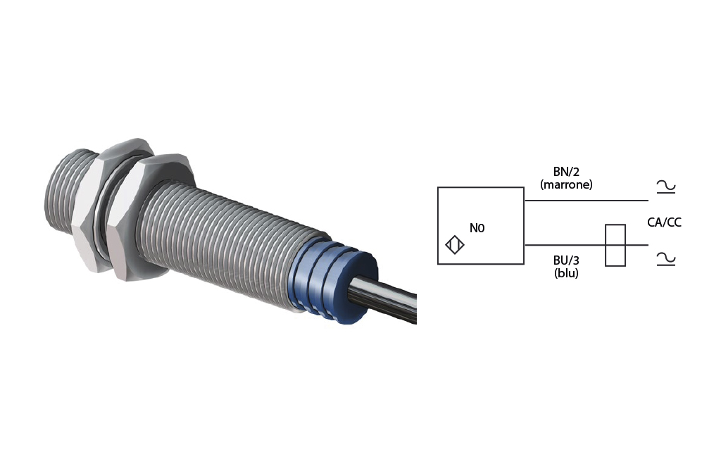 TECHNICAL FEATURES - M12 proximity limit switch with NO wire connection. Supply voltage: 24÷240V AC; 24÷210V DC. - Commutable current: 0,2A max. - Protection rate: IP 68. - Cable length: 3m. - Working temperature: from -25°C to +70°C. - Limit switch working signalled by ring LED. - On request it is available an inductive limit switch M18.