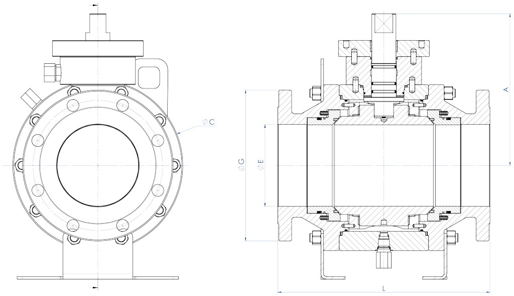 STANDARD DESIGN • ASME B16.34 • End connections: ASME B16.5 (RF-RTJ), ASME B16.25 (BW) • Face to face: ASME B16.10 • Drives mounting flange: ISO5211 • Design API 6D on request.