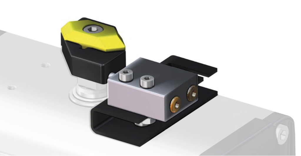 - Il peut être monté sur les modèles DAN et SRN à l'aide d'un kit composé d'une embase fixée au corps de l'actionneur et d'une came montée sur l'arbre de celui-ci.