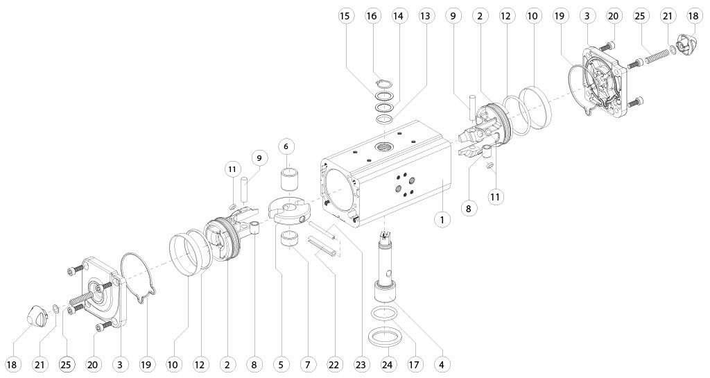 | COMPOSANTS ACTIONNEUR PNEUMATIQUE DOUBLE EFFET MESURE: DA8000 | |||