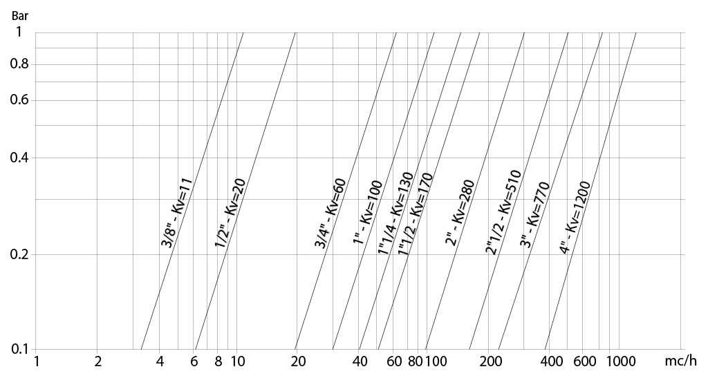La valeur Kv est la valeur du débit en m3/h (avec de l’eau à 15°C) qui provoque une chute de pression d’1 bar.