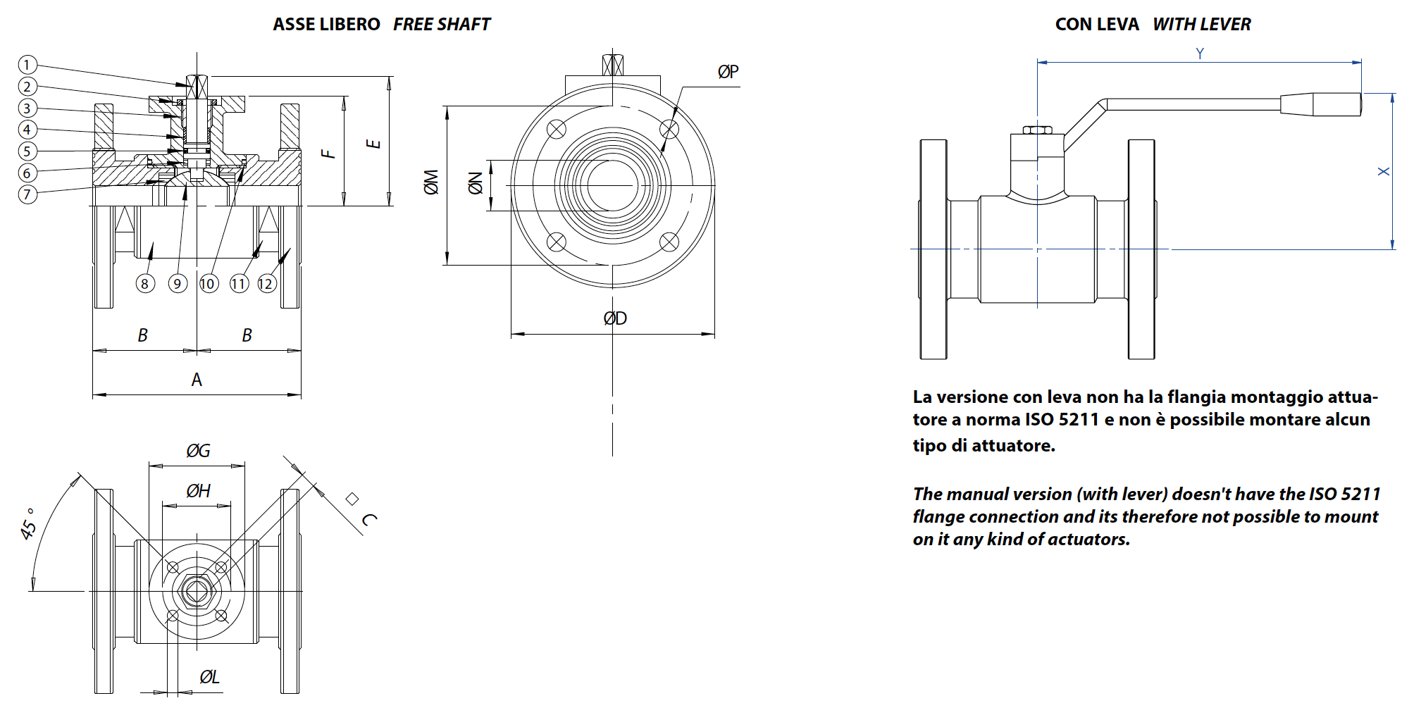 CARACTÉRISTIQUES GÉNÉRALES: • La vanne est en acier inoxydable 316L. Normes pour les brides de raccordement: EN 1092-1 ; dimensions face à face DIN 3202-F4; brides filetées tournantes UNI PN 16. • Température de fonctionnement: de -20°C à +150°C • Pression de fonctionnement: voir tableau. • Fluide véhiculé: à usage alimentaire. • Bride montage actionneur selon ISO 5211. • La version à levier n'a pas une tête de vanne selon ISO 5211 et aucun type d'actionneur ne peut être monté.