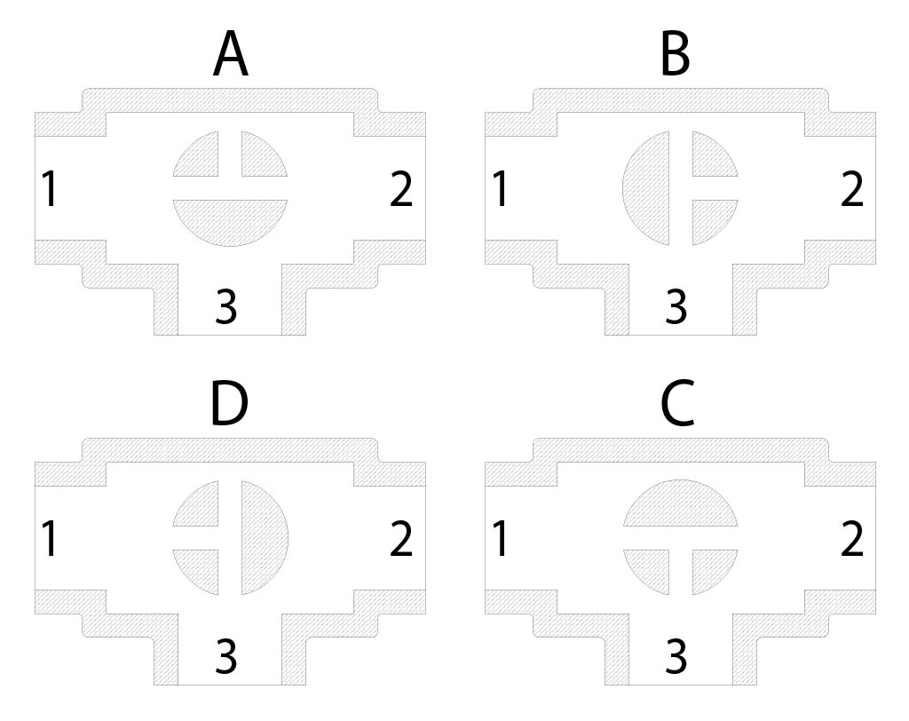 Avec l'actionneur, seules deux positions sont possibles avec une rotation de 90°: la configuration du boisseau doit toujours être communiquée à notre service commercial.
