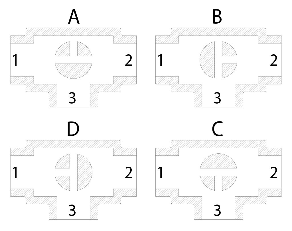 Avec l'actionneur, seules deux positions sont possibles avec une rotation de 90°: la configuration du boisseau doit toujours être communiquée à notre service commercial.