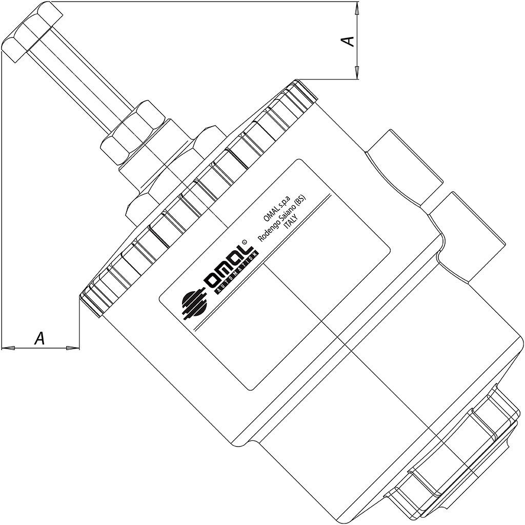 Limiteur de course Permet de limiter la course de l’obturateur de la vanne en ouverture et donc de régler le débit. Disponible pour toutes les versions. Dans les versions simple effet normalement ouvertes, il peut également être utilisé comme commande manuelle d'urgence.