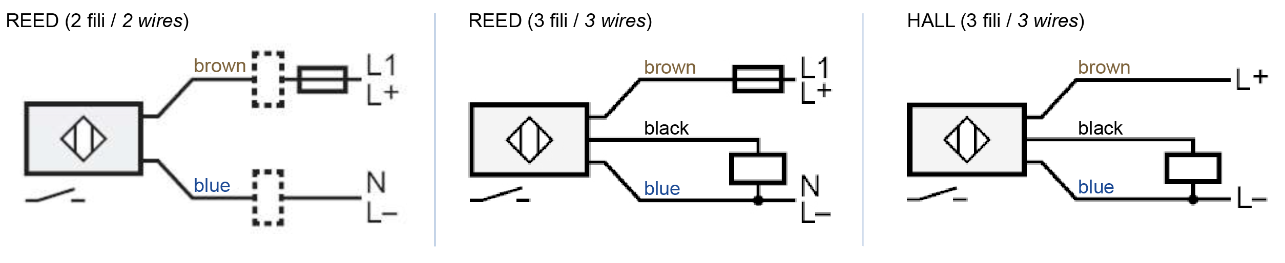 | Modèle électrique | REED (PNP/NPN) | REED (PNP) | HALL (PNP) | HALL (PNP) | ||||