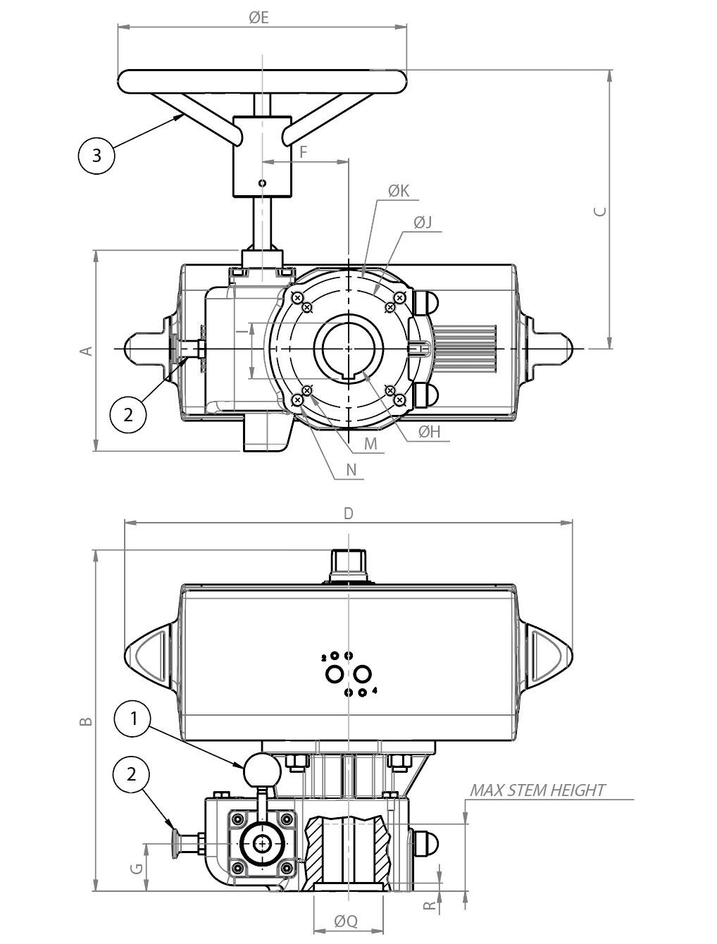 CARATTERISTICHE PRINCIPALI - Questo operatore è stato studiato per ottenere una manovra di emergenza, su valvole comandate da un attuatore pneumatico rotante a 1/4 di giro, qualora si verificasse un’avaria o venisse a mancare l’alimentazione (aria compressa). L’operatore viene montato tra la valvola e l’attuatore pneumatico. A operatore disinserito, l’attuatore comanda direttamente la valvola. L’operatore inserito consente la manovra di emergenza trascinando l’attuatore e di conseguenza l’otturatore della valvola. Inoltre consente sempre la manovra manuale della valvola se l’attuatore pneumatico devesse essere rimosso per una eventuale sostituzione o riparazione. - Grado di protezioni IP67 - Temperatura di esercizio -45°C +150°C