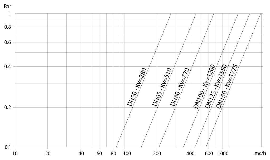 Il valore Kv è il valore di portata in m3/h (con acqua a 15°C) che provoca la caduta di pressione di 1 bar.