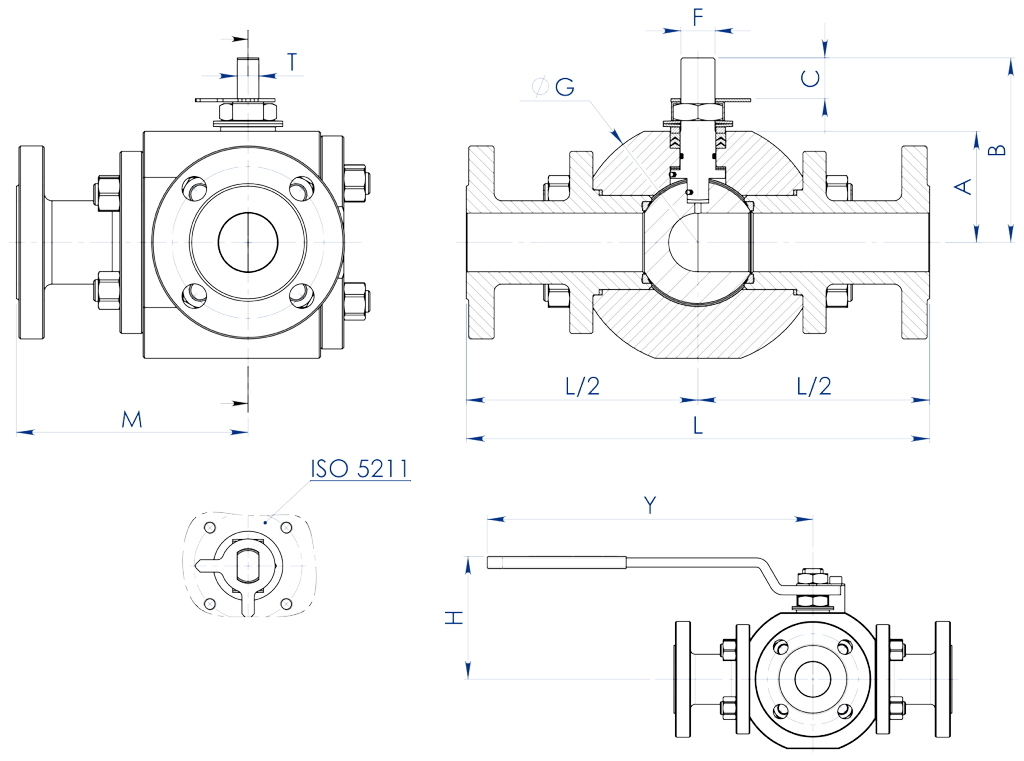 Con l’attuatore sono possibili solo due posizioni con rotazione di 90°: la configurazione della sfera deve essere sempre comunicata al nostro ufficio commerciale.