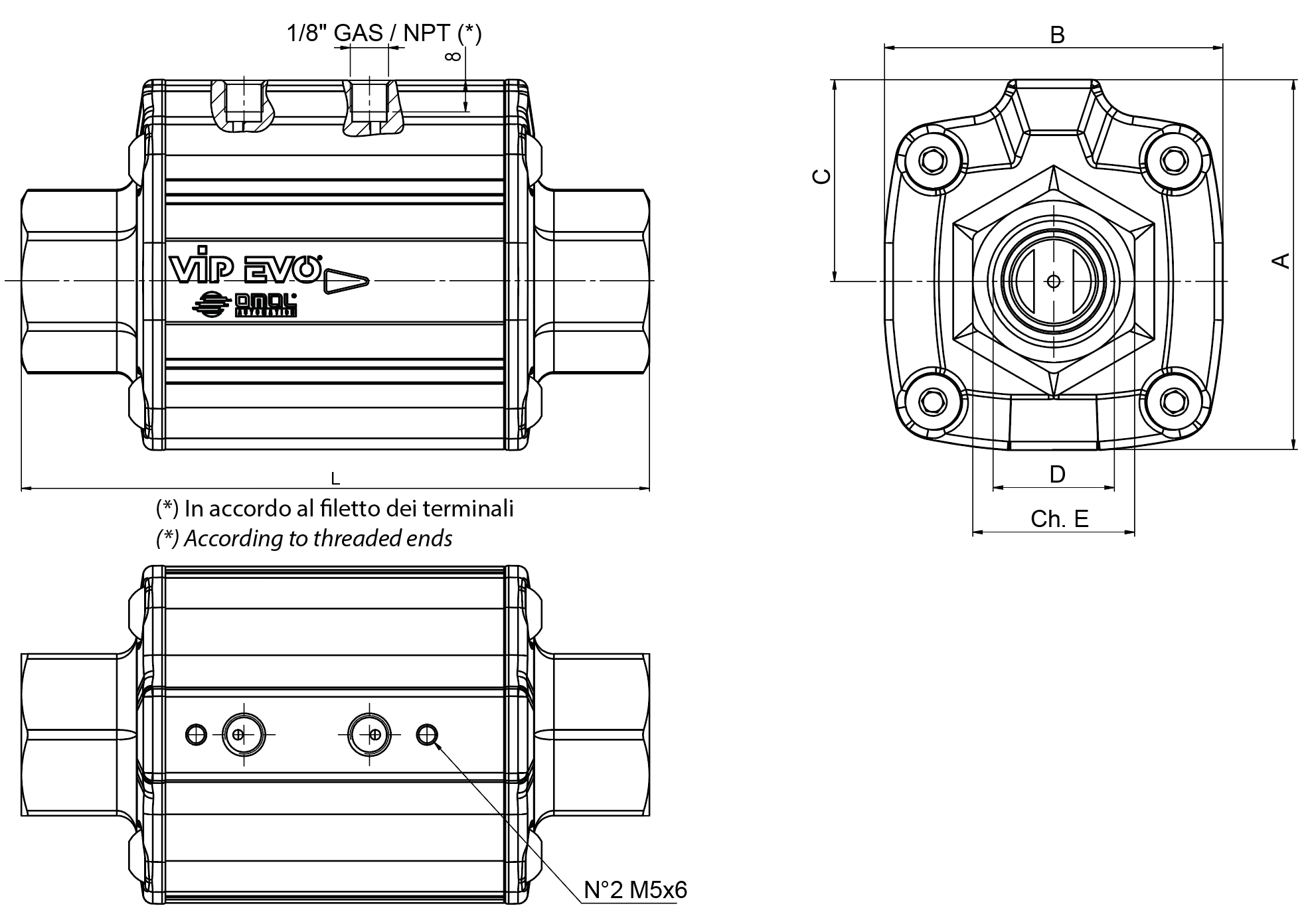 | D Filetto | GAS / NPT | 3/8” | 1/2” | 3/4” | 1” | 1”1/4 | 1”1/2 | 2” |