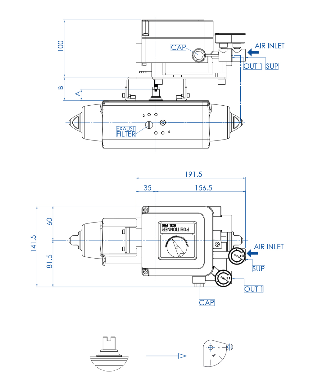 DESCRIÇÃO O posicionador eletropneumático a came é particularmente adequado para o acionamento proporcional de ambos os atuadores DAN e SRN. O posicionador é conectado ao atuador por meio de um suporte que é bloqueado na perfuração do atuador. Um sinal de regulação elétrica, dado por: termostato, viscosímetro, interruptor de pressão, etc. é enviado ao posicionador que, a partir do valor deste sinal, ajusta o ângulo de abertura ou de fechamento da válvula. A ação no sentido horário ou anti-horário pode ser alterada sem o uso de peças adicionais, basta inverter o came interno e inverter as conexões em direção ao atuador.