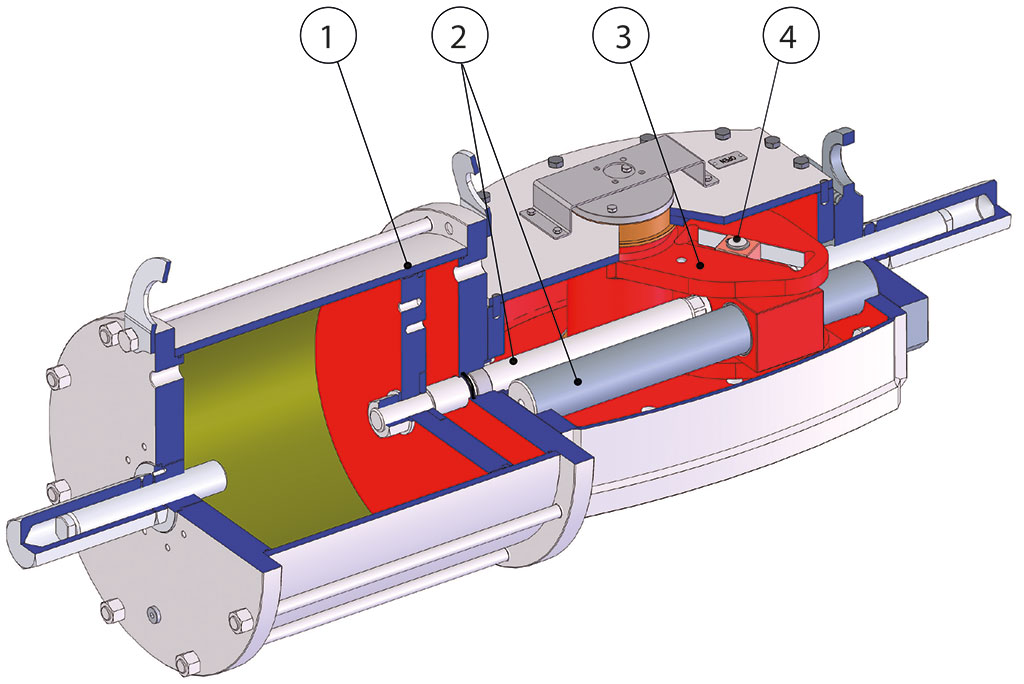 3 Sistema de conversão de movimento de linear a rotativo separado do fluido de comando do atuador.