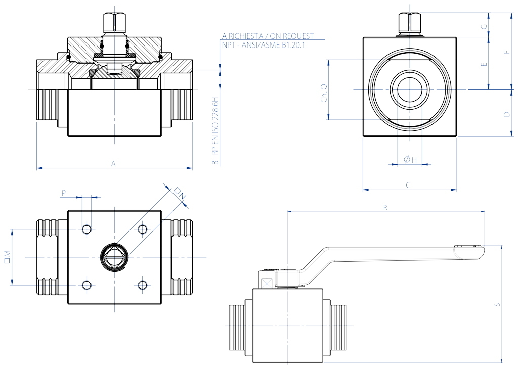 CARACTERÍSTICAS GERAIS: • Extremidades roscadas EN ISO 228 ou NPT • Temperatura de operação: de -20°C a + 100°C com Oring em NBR, de -30°C a + 160°C com Oring em FKM (a pedido) • Pressão de operação: PN500/7000 psi DN6, DN8, DN10, DN15 - PN400/6000 psi DN20 e DN25 • Fluido intercetado: fluidos autolubrificantes (líquidos e gasosos), desde que sejam compatíveis com os materiais de construção. Para fluidos não autolubrificantes (água, ...) ou outras aplicações, contactar o departamento comercial. • Dispositivo antiestático. • Fire safe design.