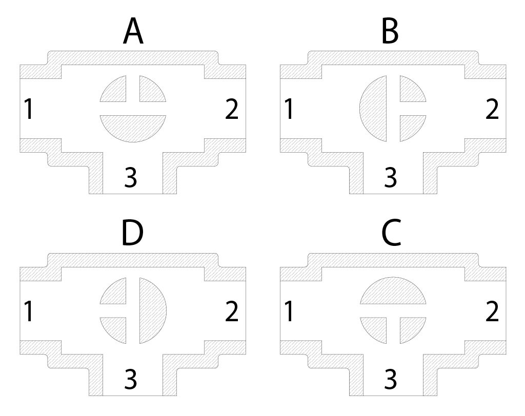Com o atuador apenas duas posições são possíveis com rotação de 90°: a configuração da esfera deve sempre ser comunicada ao nosso escritório de vendas.
