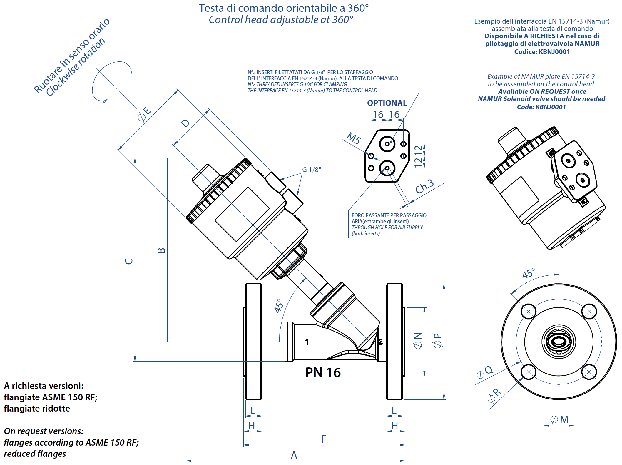 CARACTERÍSTICAS GERAIS: Material do corpo válvula: A351-CF3M (316L S.S.). Conexões de válvula: ver o esquema de codificação. Montaje en cualquier posición: horizontal, vertical, oblicua. Gama disponível de DN 15 a DN 50 nas versões de efeito duplo; efeito simples: normalmente fechada, normalmente fechada martelo de água e normalmente aberta. Las prestaciones y los diagramas de las presiones son los mismos que las versiones estándar pero están limitados a PN16 A pedido: versões para vácuo e uso de oxigênio Configuração ATEX 2014/34/UE a ser solicitada durante o pedido