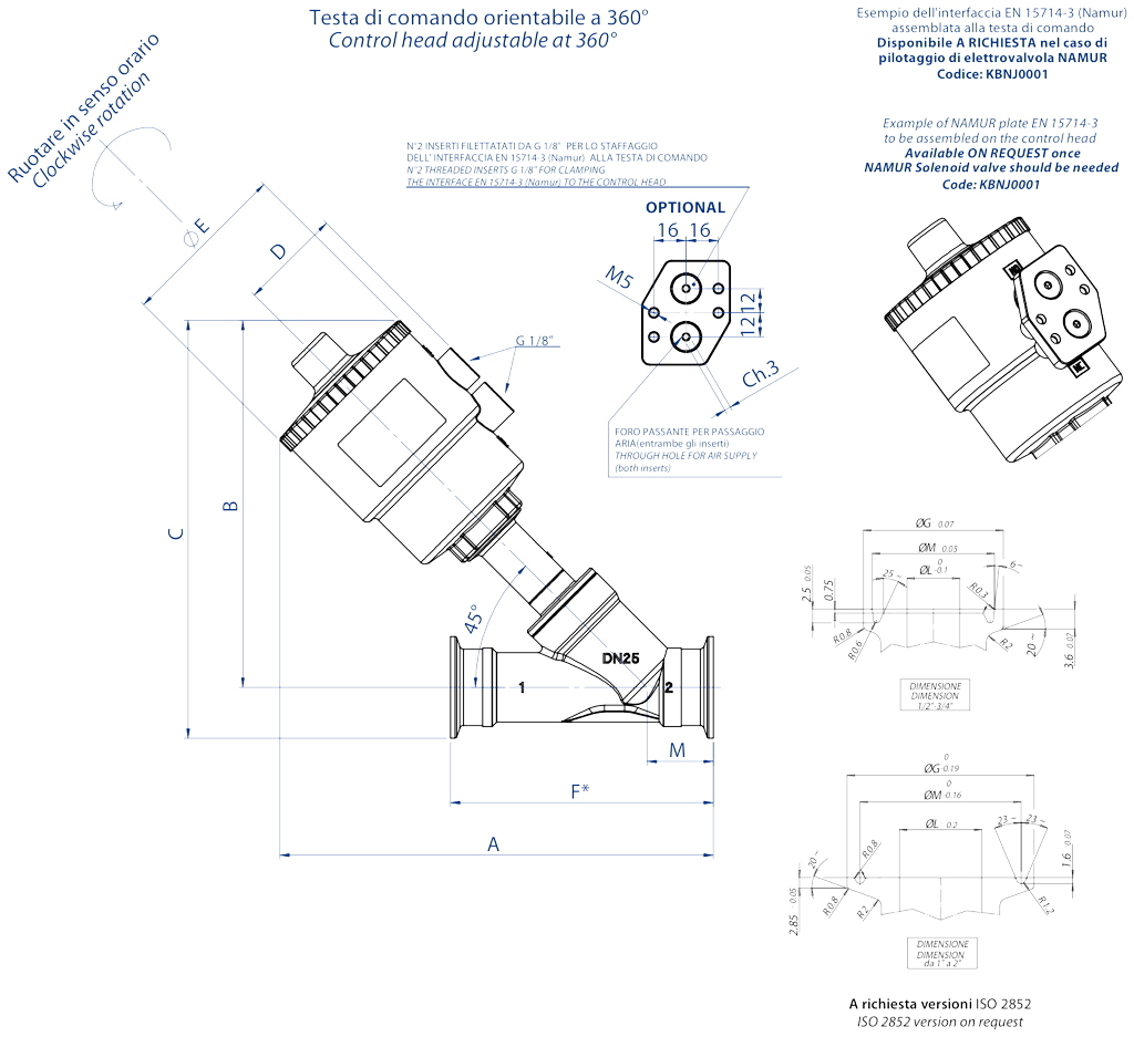 Специальная крышка из прозрачного пластика имеет две канавки для быстрой фиксации и регулировки концевых выключателей с магнитным контактом. Концевые выключатели оснащены внутренним светодиодом, который виден, когда концевой выключатель находится под напряжением. Доступны концевые выключатели типа REED и HALL с бесплатным подключением или уже подключенные M12. Крышка имеет степень защиты IP68. Внимание: для правильной фиксации в корпусе концевого выключателя визуальный индикатор, когда клапан полностью открыт, не достигает конца крышки. Концевые выключатели должны быть отрегулированы после установки клапана в систему.