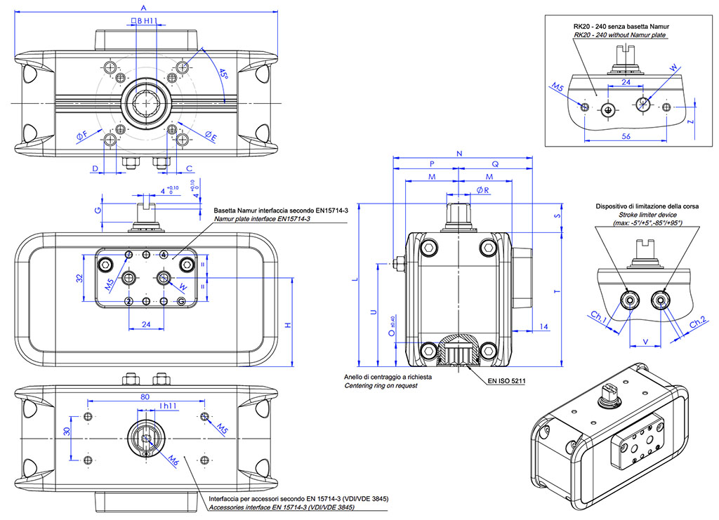 • Присоединительный фланец: EN ISO 5211: F03 - F04 - F05 - F07 - F10 - F12.