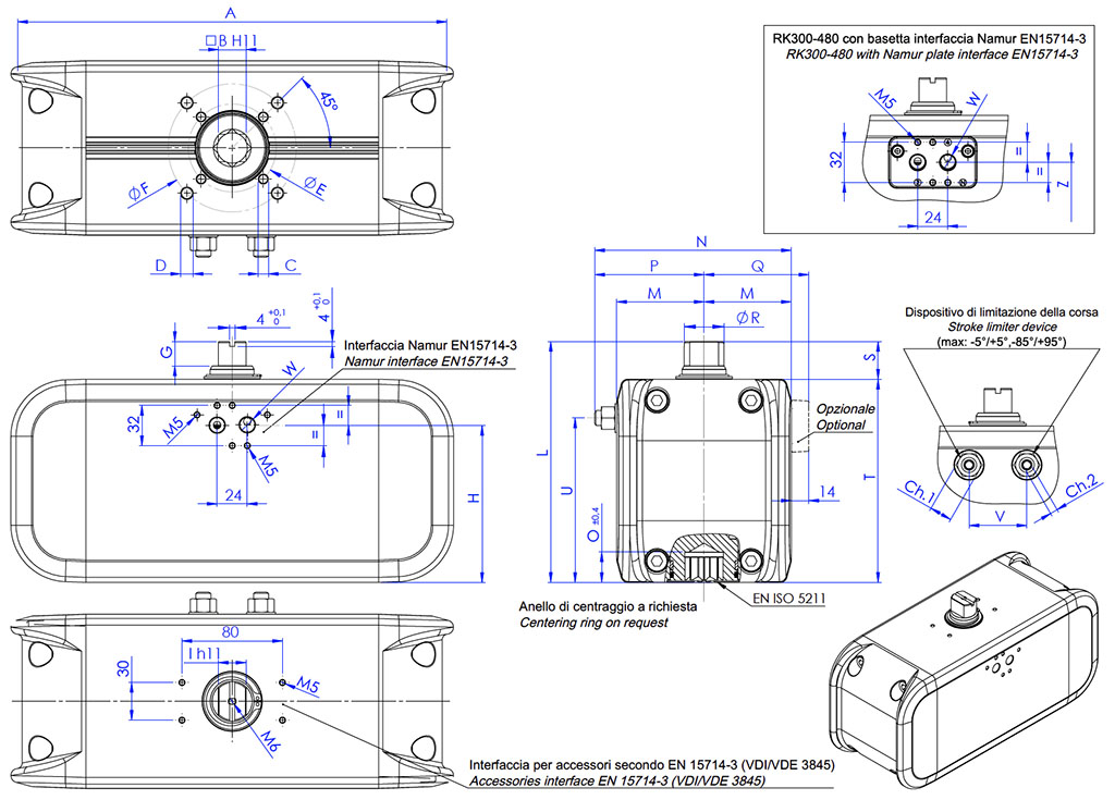 • หน้าแปลนติดตั้งตามมาตรฐาน EN ISO 5211: F03 - F04 - F05 - F07 - F10 - F12