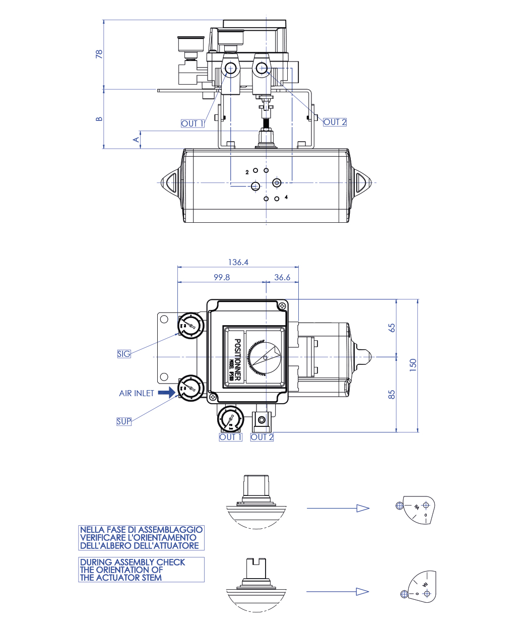 KONUMLANDIRICI, OMAL S.P.A. PNÖMATİK AKTÜATÖR İLE MONTAJLI OLARAK SATIN ALINDIĞINDA ZATEN KALİBRE EDİLMİŞTİR; ANCAK TEK OLARAK SATIN ALINDIĞINDA KALİBRE ETME SORUMLULUĞU MÜŞTERİYE AİTTİR. OMAL S.P.A. KURULUMDAN SORUMLU DEĞİLDİR.